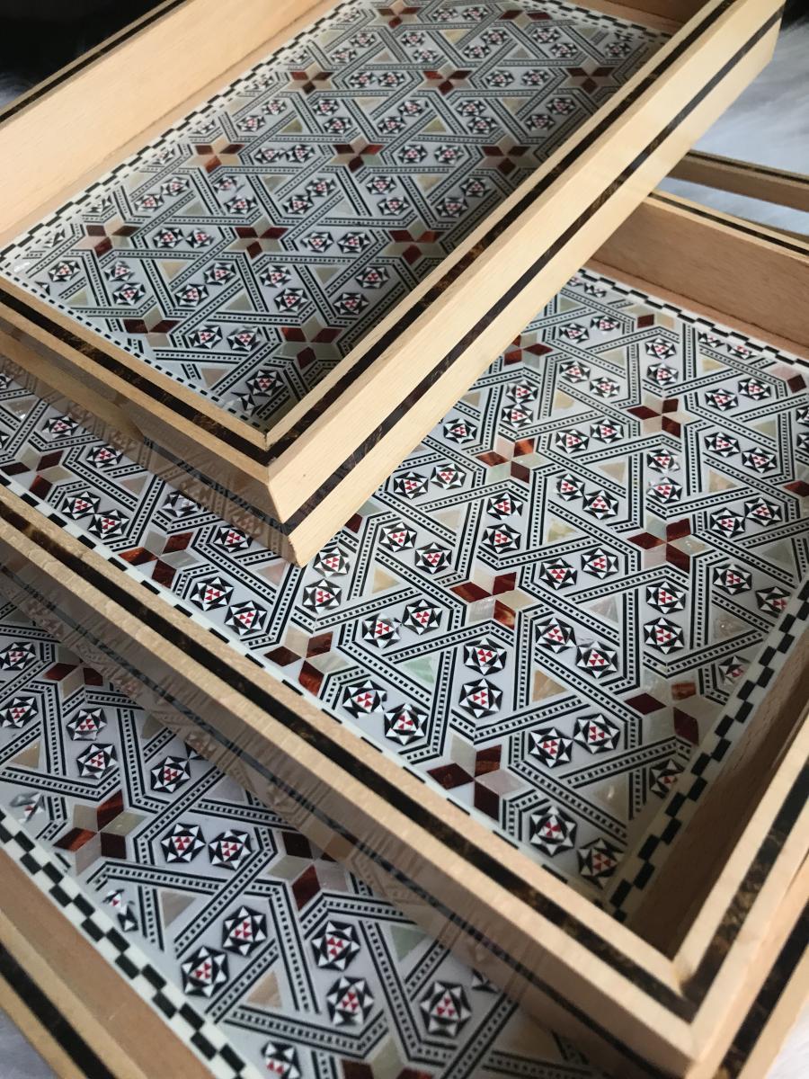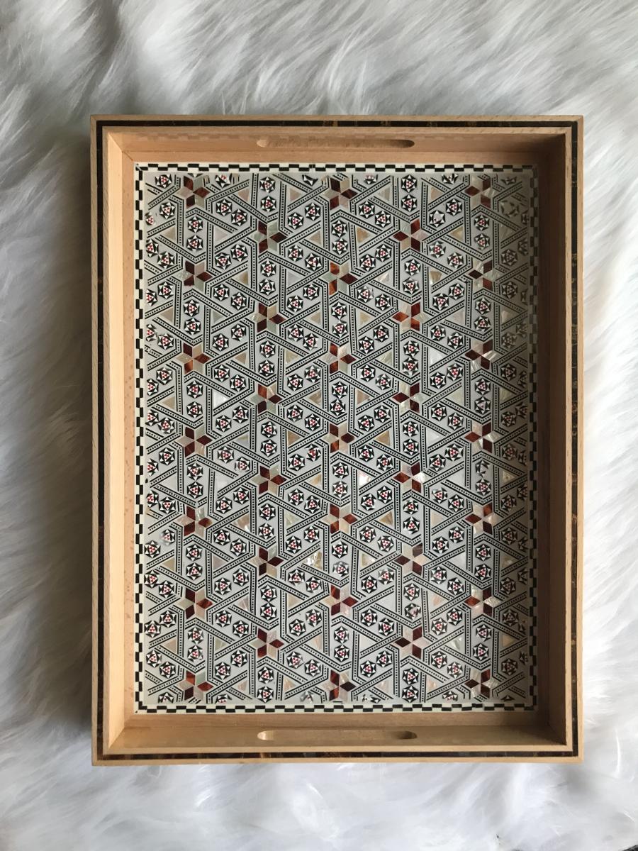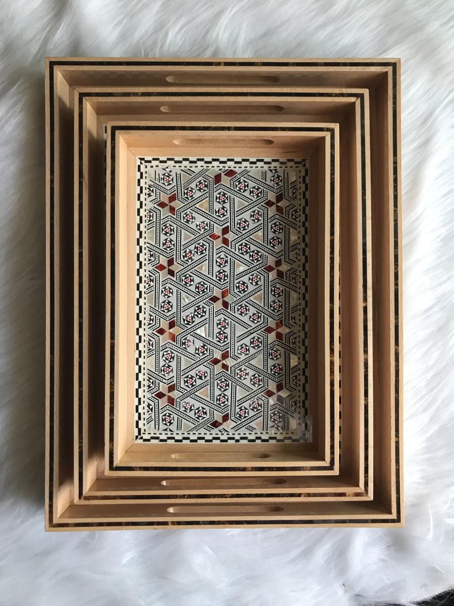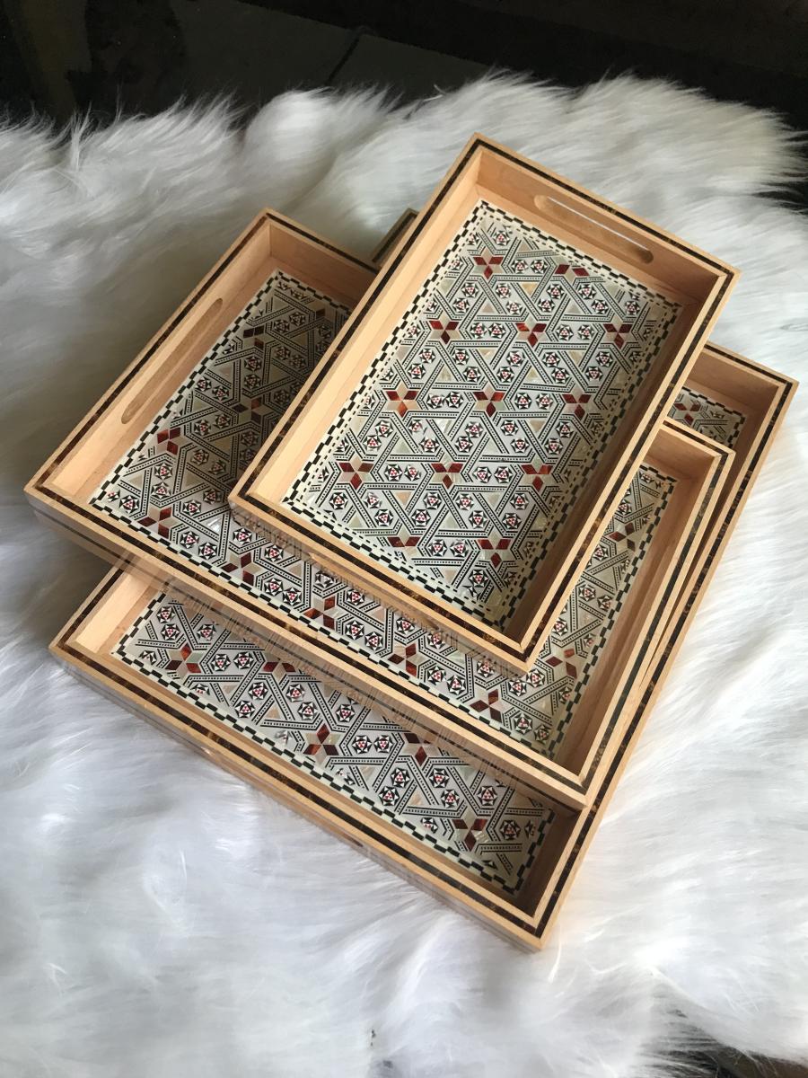 Elegance starts with the source. These trays are made of genuine red and white mother of pearl. Each piece of meticulously carved mother of pearl is place by hand on the beautiful and enduring beech wood. That is why you should not be surprised by the staring eyes as soon as you start serving in your next gathering, event, housewarming, or birthday. Of course every crowd is unique to itself. Surgegifting takes care of this aspect by providing different sizes for different crowds. So….No worries! Whether it is a solo self-care day or a heart-warming crowd accompanying your happiness we got you covered with the three sizes 😉