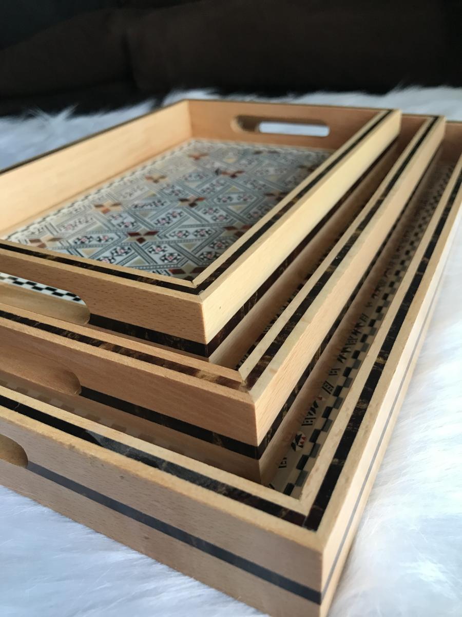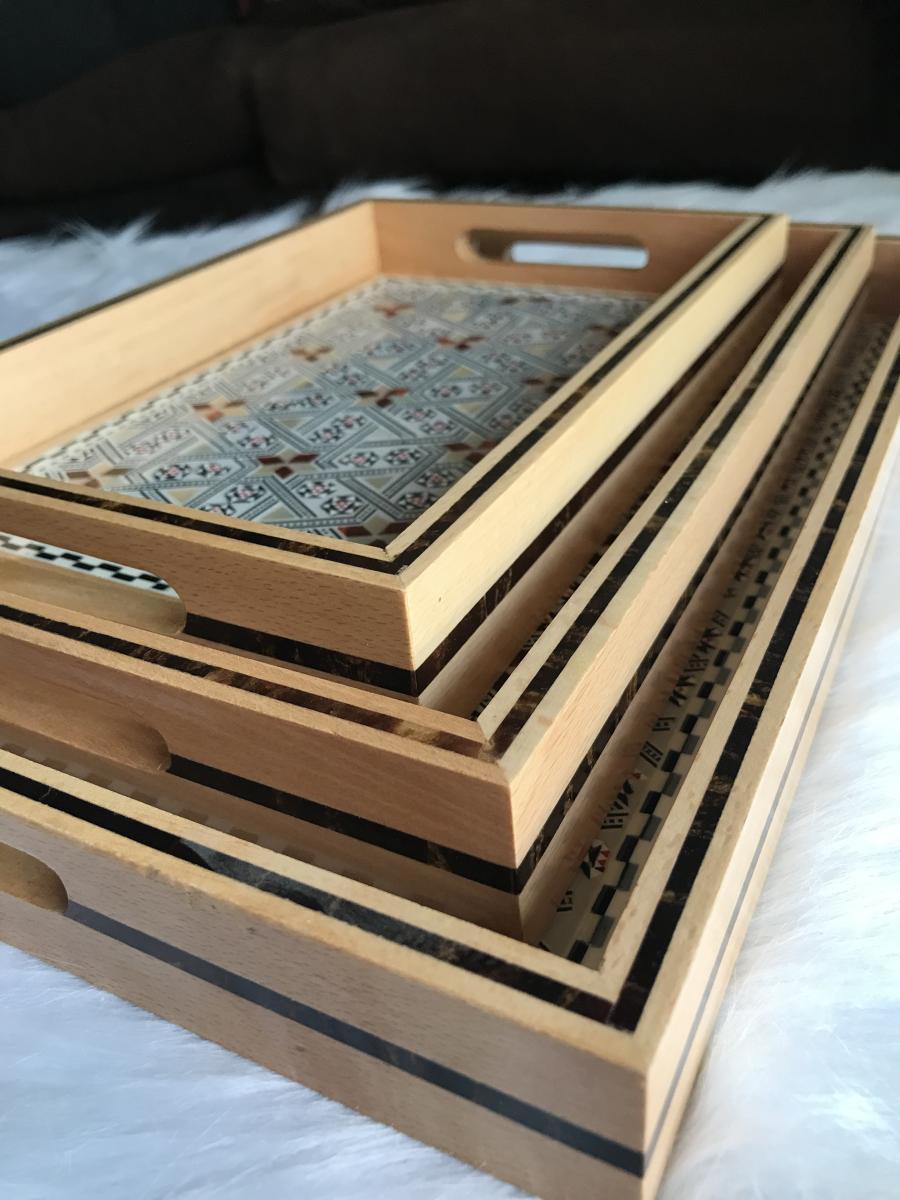 Whether you are the fierce romantic serving breakfast in bed or you are a neat organizer arranging your perfume, cologne & makeup these trays are perfect for both. It also could be placed in multiple areas of your home, dining room table as a centerpiece, living room coffee table for hosting and kitchen counters. We also assembled comfortable handles to give stable transport and nested design to ease storage all for our customer’s satisfaction.