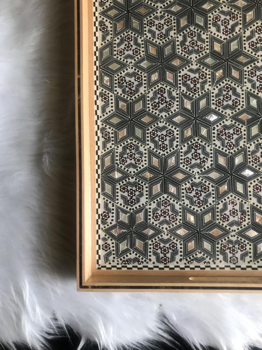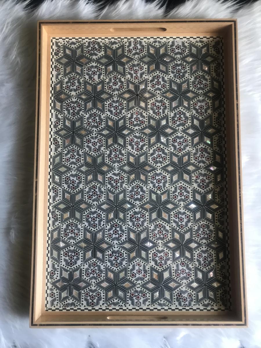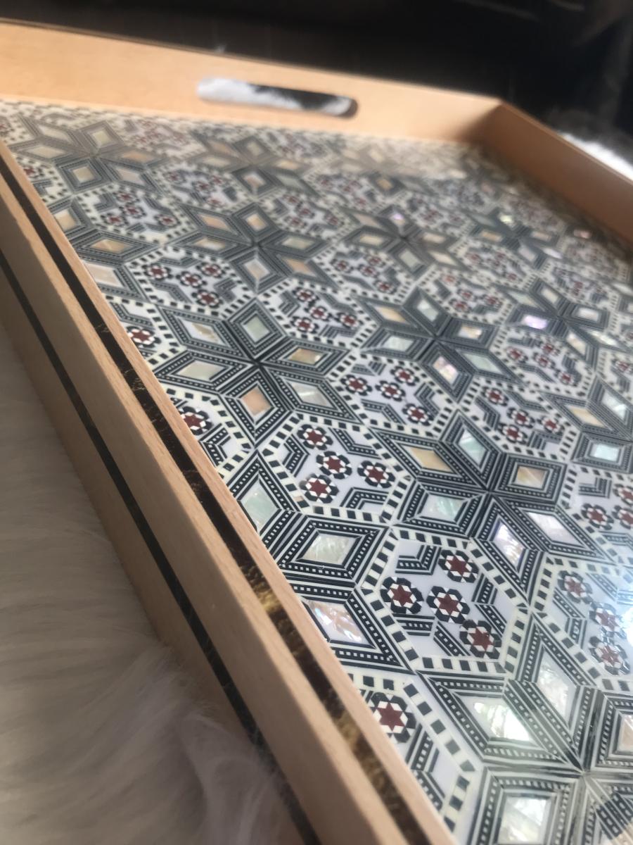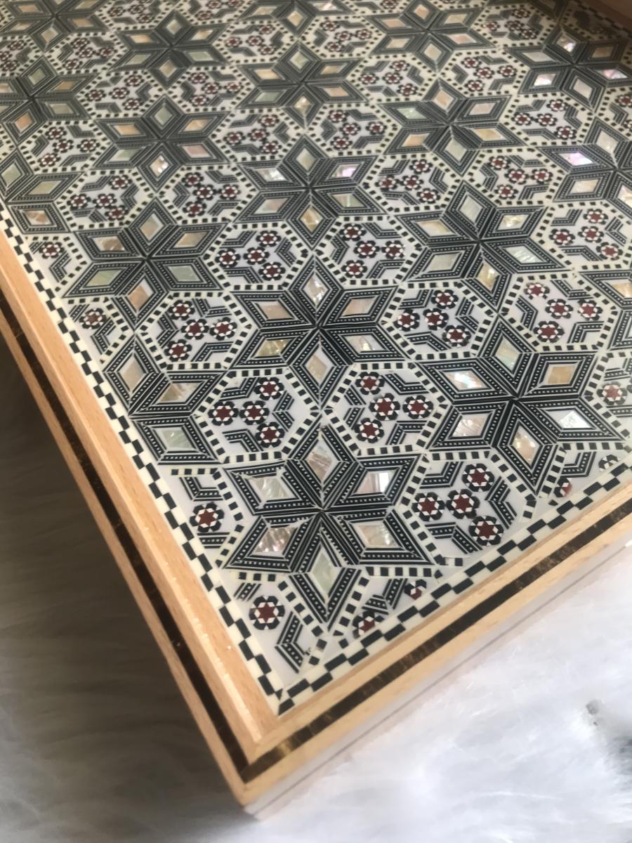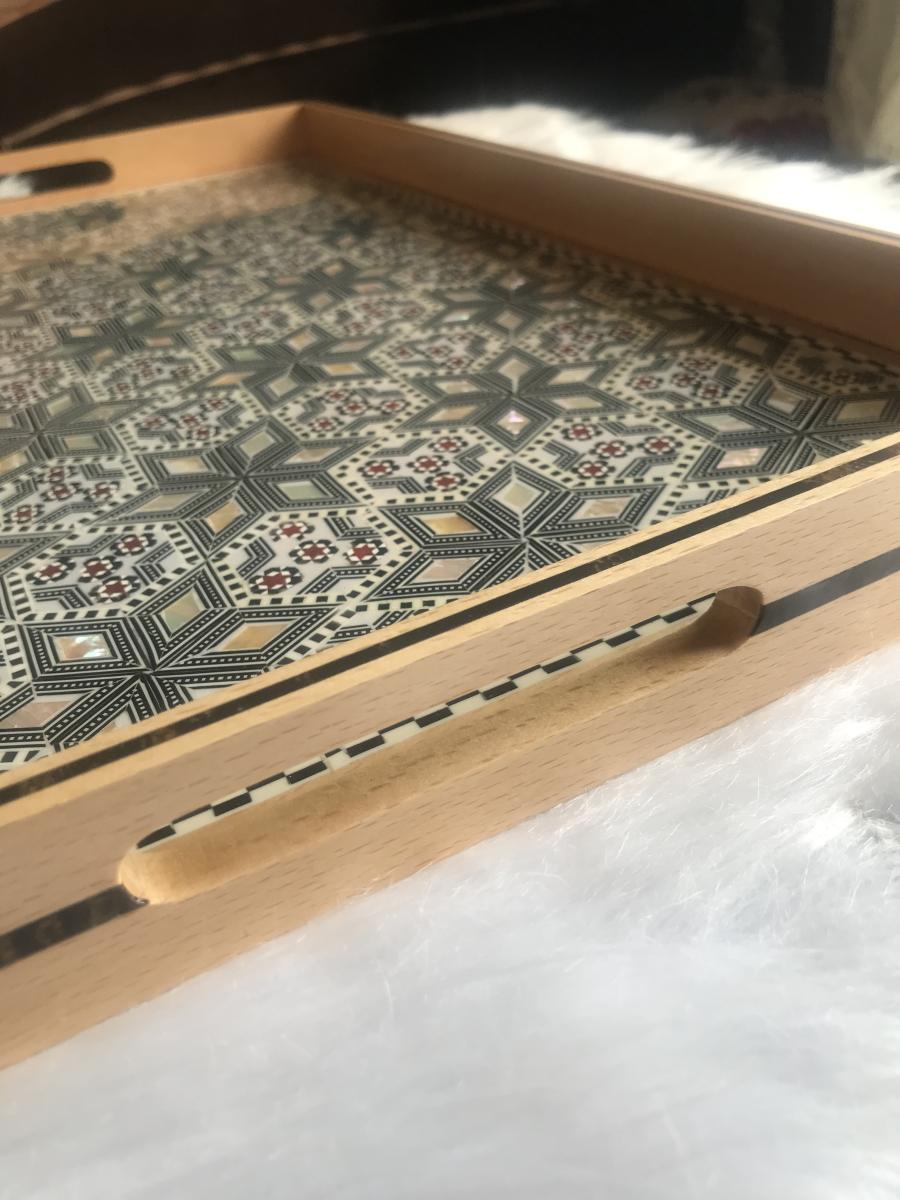 Elegance starts with the source. These trays are made of genuine red and white mother of pearl. Each piece of meticulously carved mother of pearl is place by hand on the beautiful and enduring beech wood. That is why you should not be surprised by the staring eyes as soon as you start serving in your next gathering, event, housewarming, or birthday. Of course every crowd is unique to itself. Surgegifting takes care of this aspect by providing different sizes for different crowds. So….No worries! Whether it is a solo self-care day or a heart-warming crowd accompanying your happiness we got you covered with the three sizes 😉